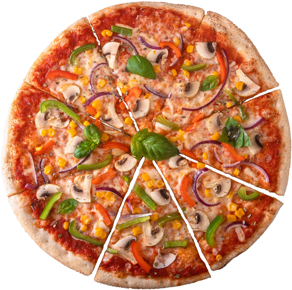 Mushroom, red onion, peppers, sweetcorn and fresh basil